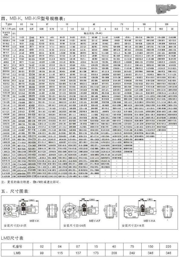 MB-K , MB-K/R型號(hào)規(guī)格表尺寸圖表LMB尺寸表