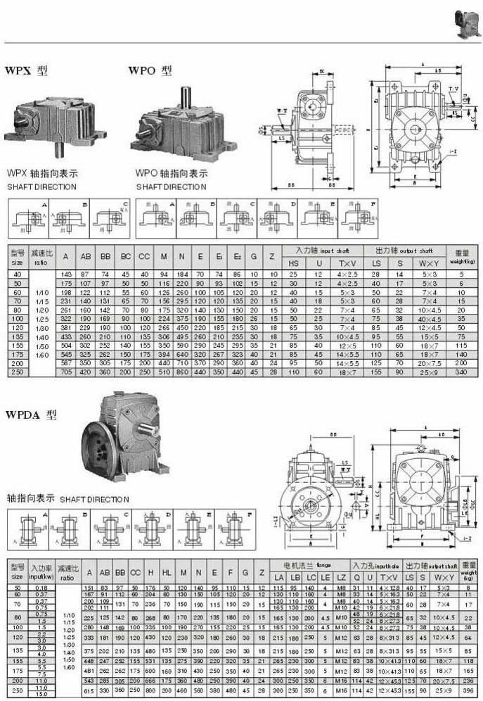 WPX,WPO WPDA型型號參數(shù)圖表
