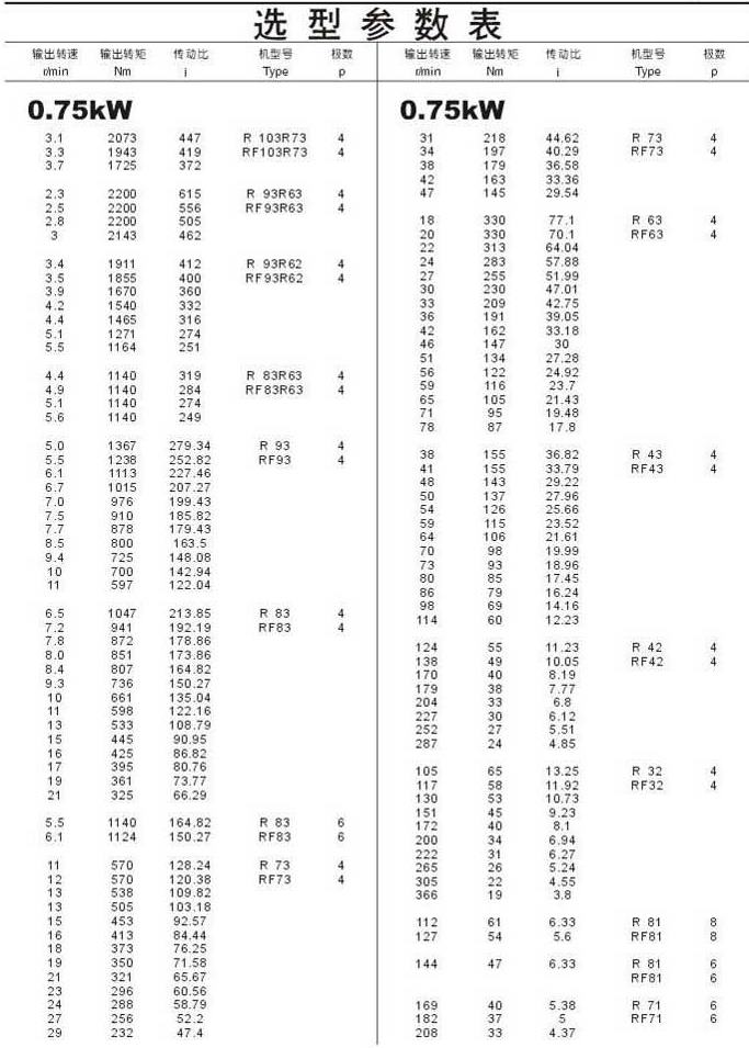 選型參數(shù)表0.75kW(續(xù))