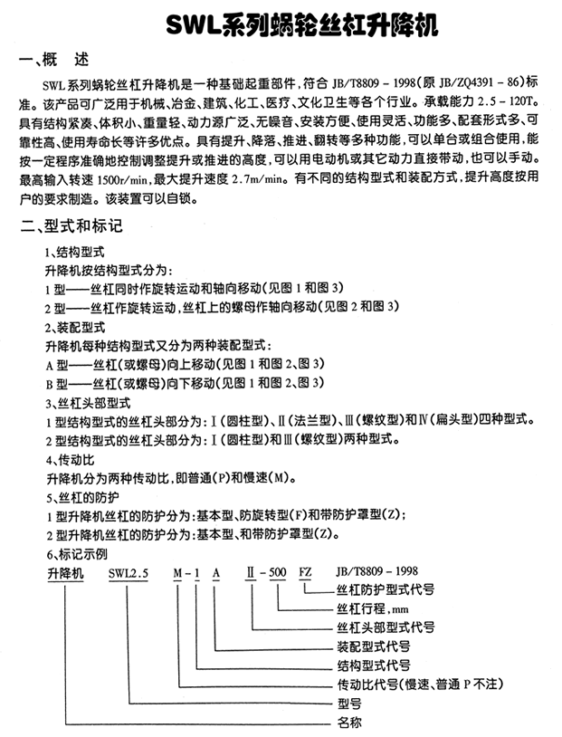 傳動(dòng)機(jī)械 >> SWL、JWM絲桿升降機(jī) 提升重量0.5-120噸