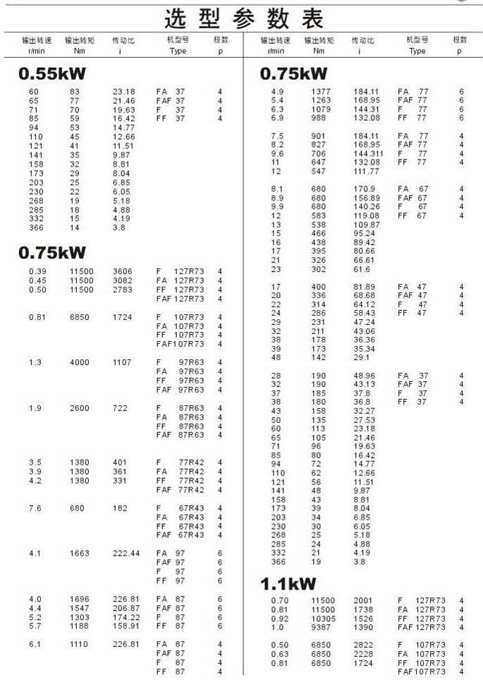 選型參數(shù)表0.55kW(續(xù)),0.75kW,1.1kW