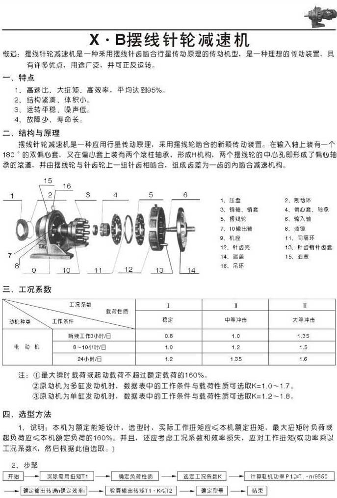 X . B擺線針輪減速機特點結(jié)構(gòu)與原理工況系數(shù)選型方法