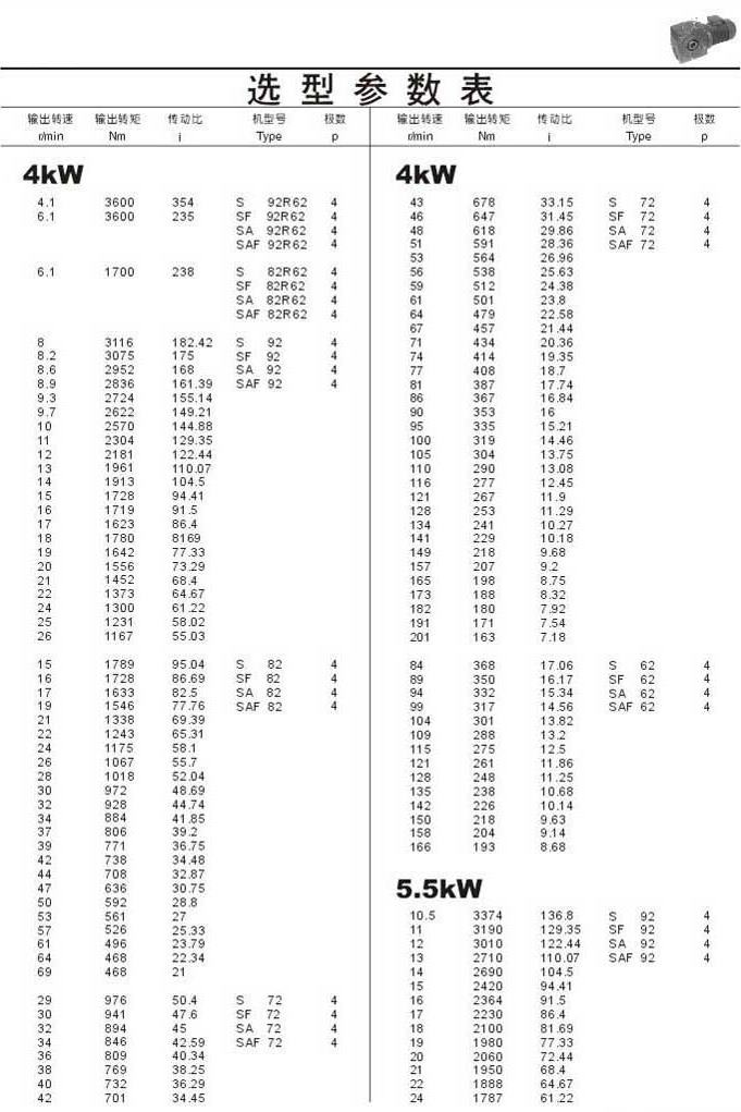 選型參數表4kW(續(xù))和5.5kW